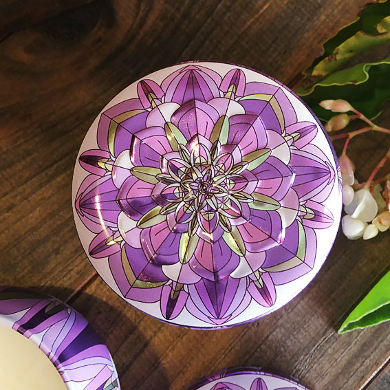Cute art deco design tin holds approx 120grms of beautifully scent natural soy wax. When you've finished burning you can simply wash out with hot soapy water and reuse.